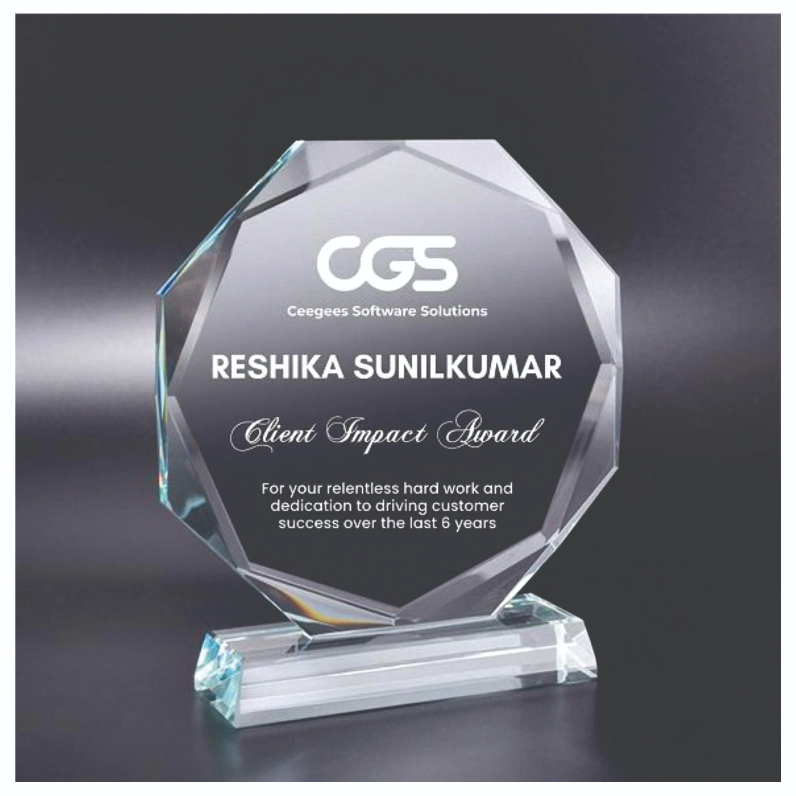 Timeless crystal trophy created to recognize excellence
