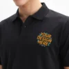 • Trendy black crew neck T-shirt with bold comic-style custom print